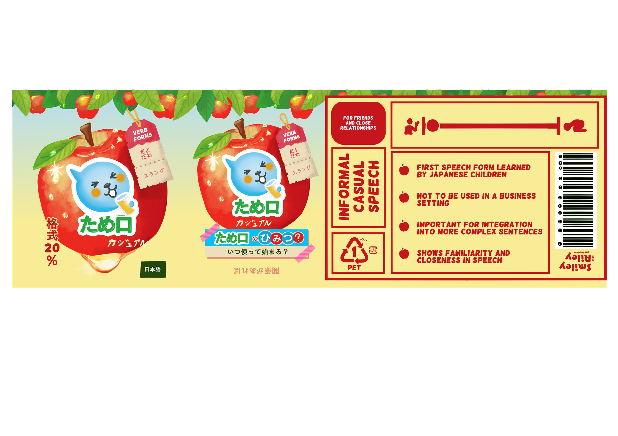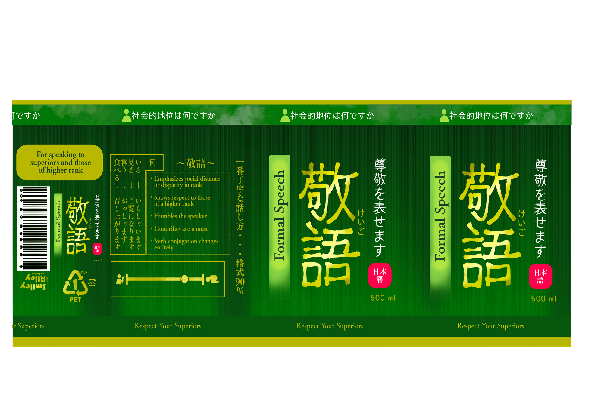 Similar to choosing a drink from a vending machine, when you speak in Japanese you must choose your formality level. This decision is dependent on many different factors and will influence your relationship going forward. This piece reimagines my favorite Japanese vending machine drinks as three different speech styles: ため口 (tameguchi – casual impolite speech), 丁寧語 (teineigo – polite speech), and 敬語 (keigo - formal speech) which are used most often in daily life.